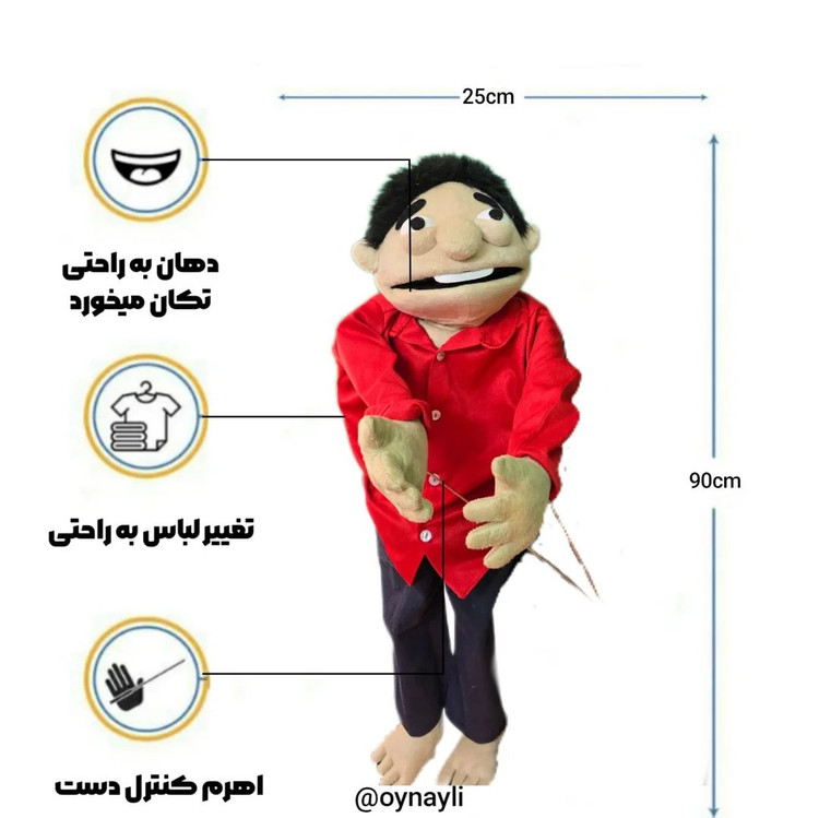 عروسک عمو کد : اطلاعات عروسک : دست ها ، پاها و انگشتان متحرک است قابلیت تغییر و تعویض لباس ها به راحتی تولید شده از بهترین جنس و مواد و سایز استاندارد عروسک گردانی مناسب برای تمام سنین موارد استفاده : نمایش عروسکی نمایش تلوزیونی تئاتر عروسکی جشنواره عروسکی فضای مجازی مدارس و .. ثبت از طریق ، غرفه ، واتساپ یا تلگرام یا تماس باشماره 09381132300 ارسال به با پست